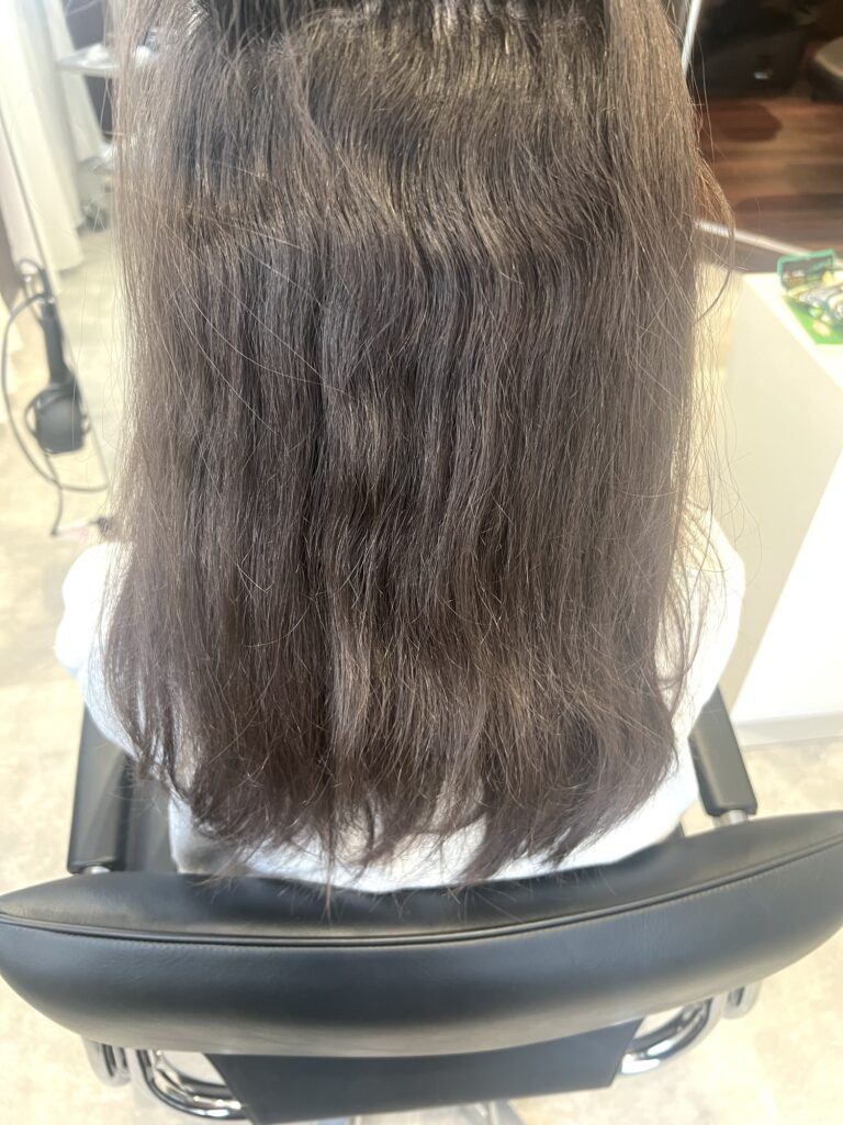 今回のお客様の髪質は、髪の太さはそこまで太くありませんが、クセの種類が 縮毛に近いタイプでした。