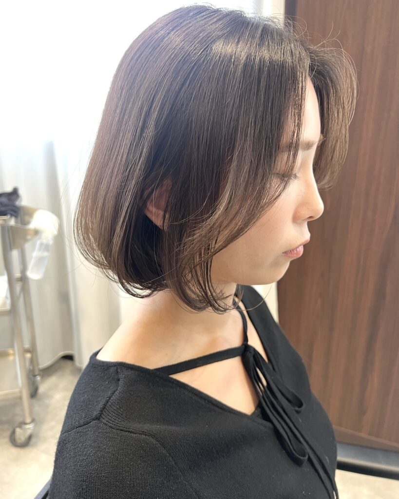 今回のお客様も、ロングからカットしたことで毛先のダメージはリセットされ、さらにカラーでツヤ感をプラスすることで乾かすだけでまとまる、自然な美髪ボブに仕上がりました。