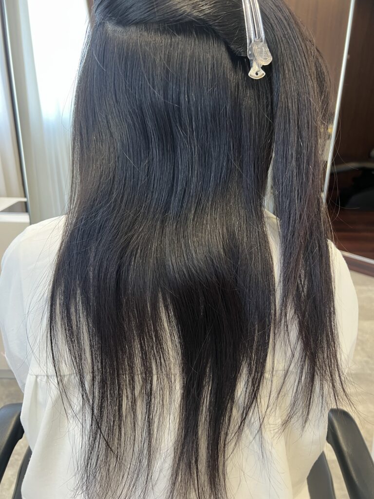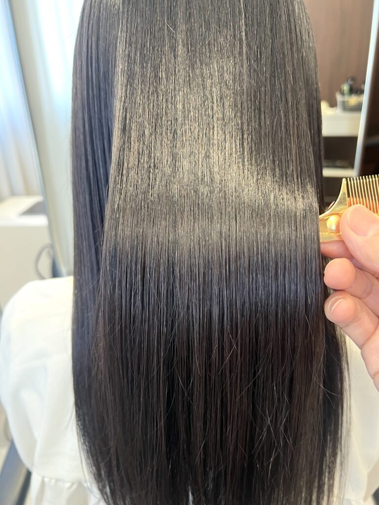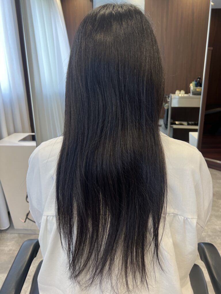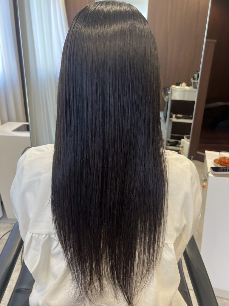 髪の内部が整うことで、ここまで均一な反射が出るのが特徴です。