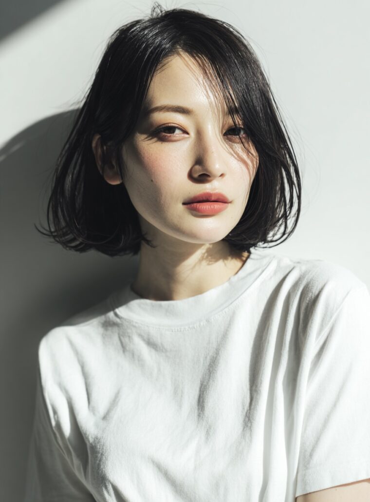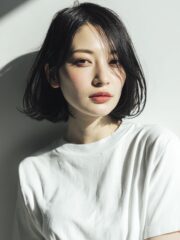 Name ヘルシーなニュアンスボブ Data カットワンレンベースに表面に少しレイヤーをいれて柔らかくしてます カラーアッシュグレー Point ワンレングスのカットなのですが、それだと柔らかさがでないので表面のみレイヤーをいれ、中間毛先からスライドカットで軽くしています。 カラーは自然な黒髪です!