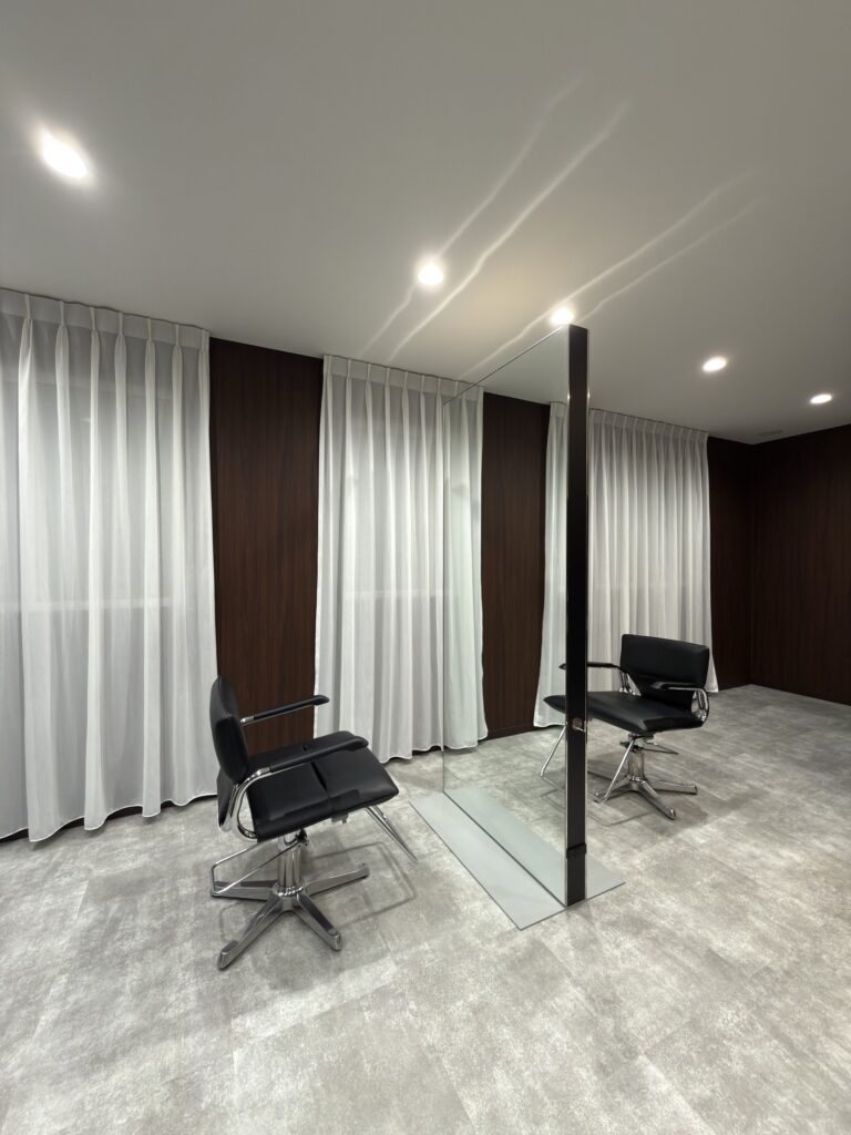 鏡面は2面で対面になり、他のお客様の目も気にならない、半個室的なプライベート空間になっています。